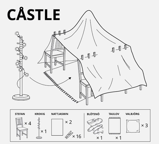 - IKEA is legendary for their put-it-together-yourself instructions, and comes through for kids at home with blanket fort instructions! Visit Mashable to see IKEA made blanket fort instructions for kids . . . and some other fun ideas too! I believe I need to construct a Castle.
