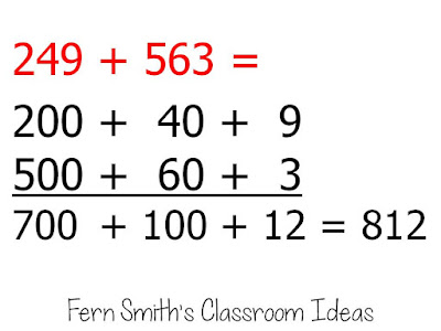 An excellent way to introduce or review this skill is with partners and white boards. Let each student write a problem on their board, {or for a more GUIDED LESSON, you write two set problems on the overhead camera} then the students exchange white boards and solve the problem using the expanded place value method.