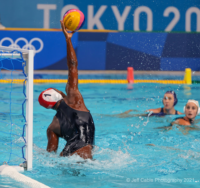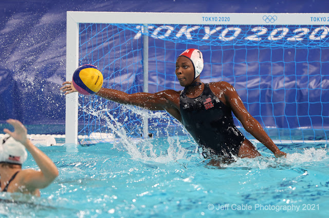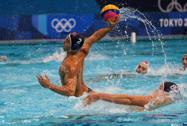 Honestly, there are not many things to pick on with this new camera. But you know me, and you know that I am really demanding with my camera gear. The one thing that I did not like about the Canon R3 is that Canon chose to have one CFexpress card slot and one SD card slot. I always write RAW images to both cards when I am shooting (for redundancy), and since the SD card is so much slower than the CFexpress card, I have numerous times when I filled the camera buffer and missed some great shots. For the USA Water Polo women's gold medal game, I decided to pull the SD card and shoot to just the CFexpress card. I could not risk having buffer issues during this key game!