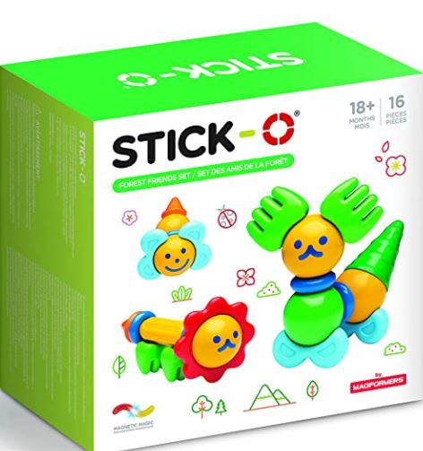 With the Stick-O City 16 Piece Set, kids can construct their very own busy city. Toddler can build a car, racer, airplane and more with the City 16Pc Set . Included in this kit is 1 Sphere, 2 Stick, 3 Long Stick and magnetic accessories including vehicle wheels, wings, and propellers. MSRP $24.99; ages 36m+.